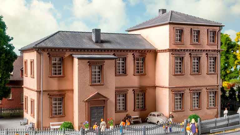 Модельный набор «Вальдорфская школа» из цветного пластика для самостоятельной сборки рекомендуется для железнодорожных макетов типоразмера Н0 (1:87) и диорам в масштабе 1/87. Размеры: 282 x 130 x 177 мм. Окраска модели не требуется. Клей в набор не входит.