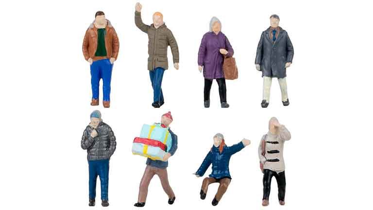 Масштабный модельный набор из 8 окрашенных фигур «Туристы в зимней одежде» из пластика рекомендуется для диорам в масштабе 1/87 и железнодорожных макетов типоразмера Н0 (1:87). Окраска фигур не требуется (цвет, ассортимент и дизайн может отличаться от представленного на иллюстрации). Для установки фигурок рекомендуется использовать термоклей.