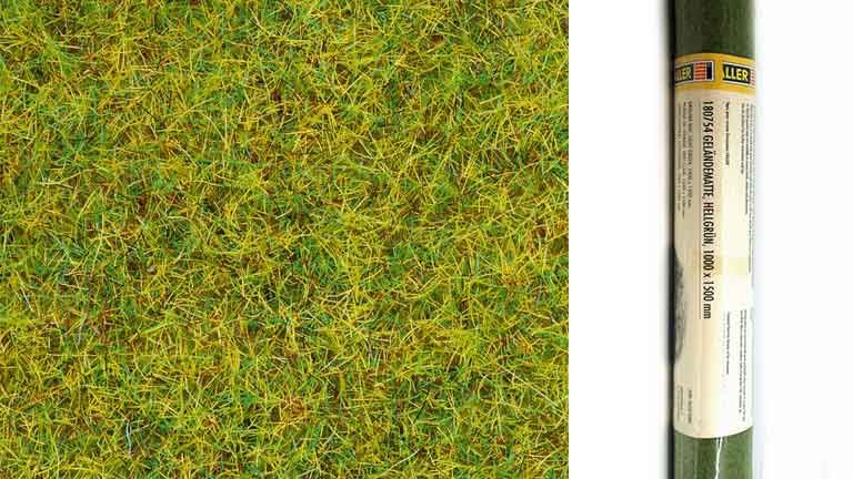 Покрытие для декора макета «Трава светло-зелёная». Высота флока ~2,5 мм. Размер рулона 1500 × 1000 мм ≈ 1,5 м². Рекомендуется для диорам в масштабе 1/35—1/250 и железнодорожных макетов типоразмера G, 0, H0, TT, N и Z.