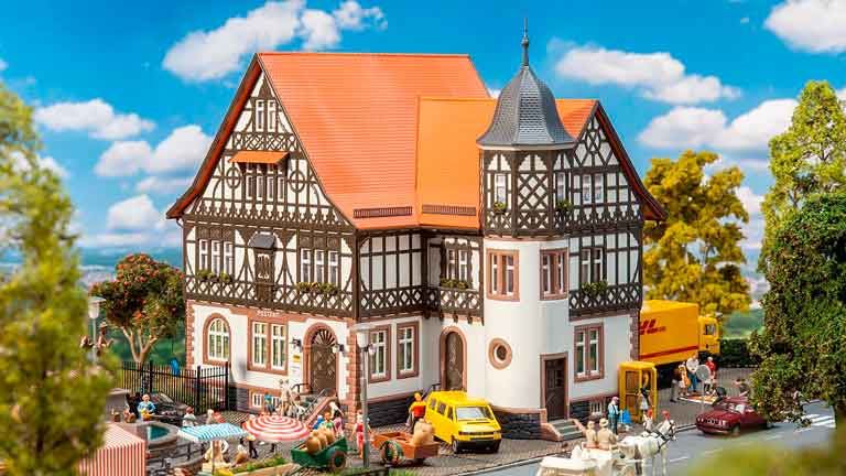 Масштабный модельный набор «Главное почтовое отделение Бад Либенштайн» из цветного пластика для самостоятельной сборки рекомендуется для диорам в масштабе 1/87 и железнодорожных макетов типоразмера Н0 (1:87). Размер: 215 x 157 x 190 мм. Окраска модели не требуется. Клей в набор не входит.
