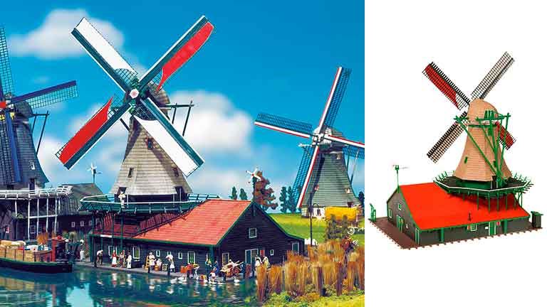 Коллекционный набор «Ветряная мельница» из цветного пластика для самостоятельной сборки рекомендуется для диорам в масштабе 1/87 и железнодорожных макетов типоразмера Н0 (1:87). Размер: ~255 x 180 x 330 мм. Окраска модели не требуется.