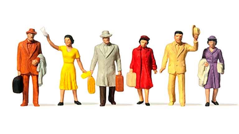 Масштабный модельный набор из 6 окрашенных фигурок «Путешественники» из пластика. Окраска фигур не требуется (цвет, ассортимент и дизайн может отличаться от представленного на иллюстрации). Рекомендуется для диорам в масштабе 1/87 и железнодорожных макетов типоразмера Н0 (1:87). Для установки фигурок рекомендуется использовать термоклей.
