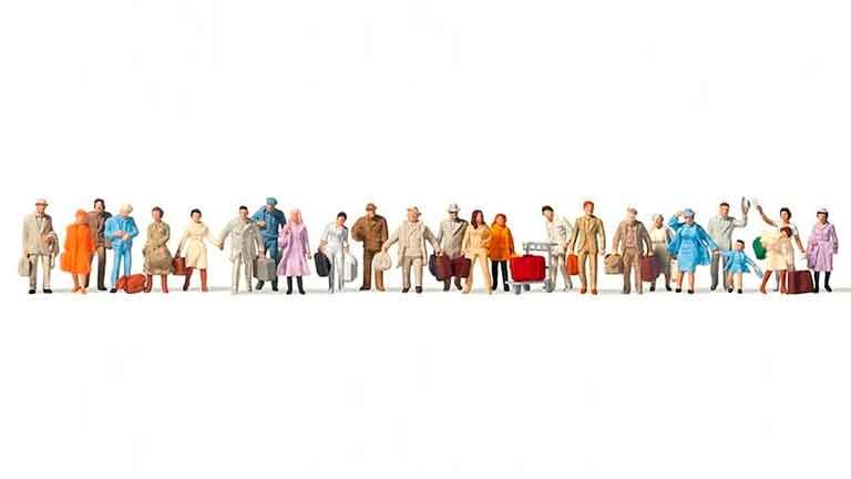 Модельный набор из 24 фигурок людей «Стоящие и идущие путешественники» из пластика рекомендуется для диорам в масштабе 1/87 и железнодорожных макетов типоразмера Н0 (1:87). Окраска моделей не требуется.
